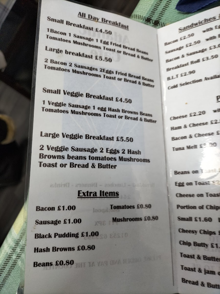 Atlantic Cafe specializes in classic cafe fare that’s bound to tantalize your taste buds. Whether you’re a breakfast enthusiast or in search of a hearty lunchtime bite, their menu has something for everyone. Start your day with their All Day Breakfast options, where you can indulge in a savory Small Breakfast for just £4.50 or go all out with the Large Breakfast for £5.50. Imagine fluffy scrambled eggs, crispy bacon, and perfectly golden toast that fills your plate and warms your heart.